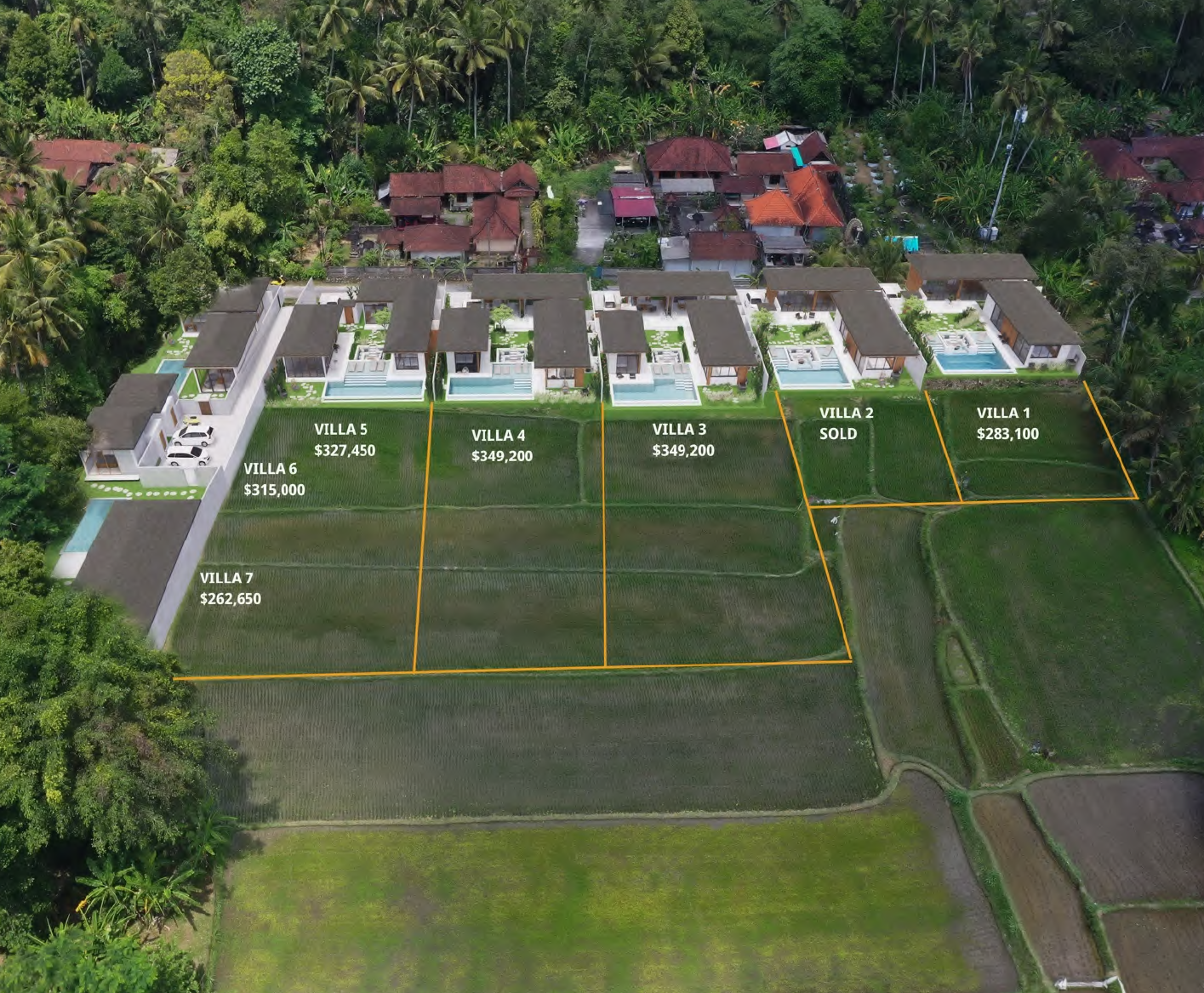 GREEN VIEW VILLAGE is a collection of spacious modern villas located in a peaceful green area of Ubud. The project is designed for comfortable living and stable investment returns. Each villa sits on a generous plot of land and features a large private swimming pool with open views of rice fields and jungle. To guarantee the breathtaking scenery, additional land in front of each villa is leased for the full leasehold period. This ensures that the rice field and jungle views remain unchanged for the entire duration of ownership.