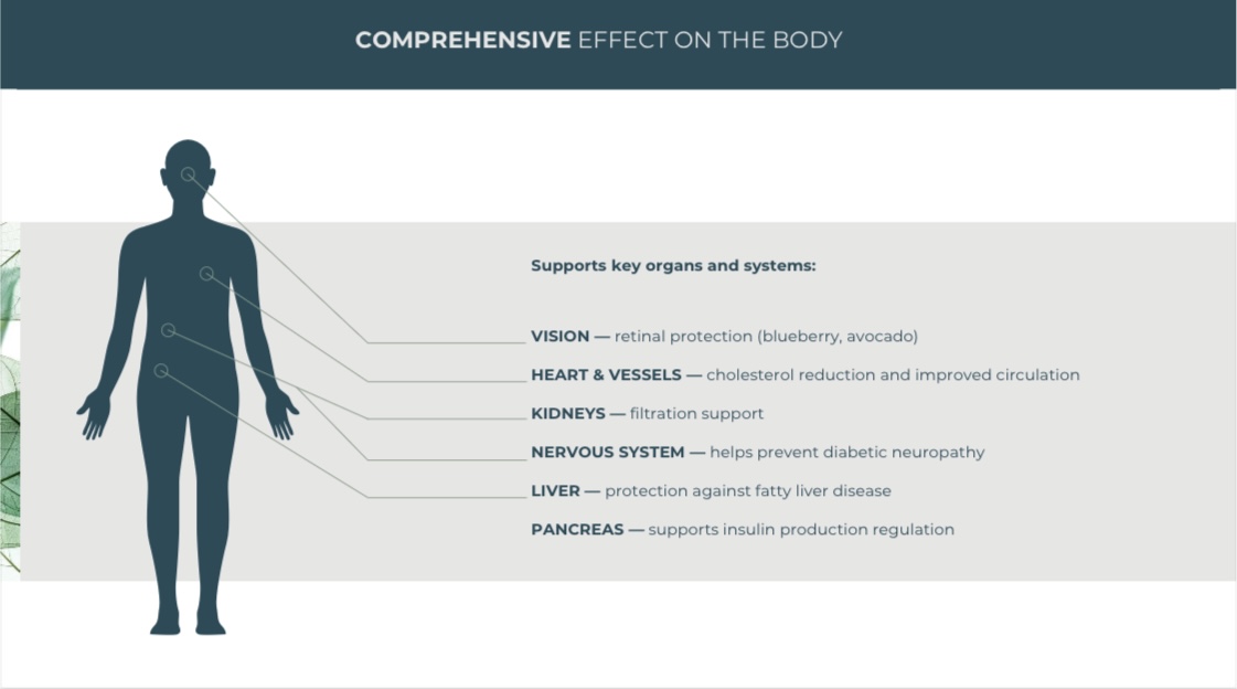 Helps reduce blood glucose by up to 5 units within 12 hours. May support a gradual reduction in insulin dependence within 7–20 days
