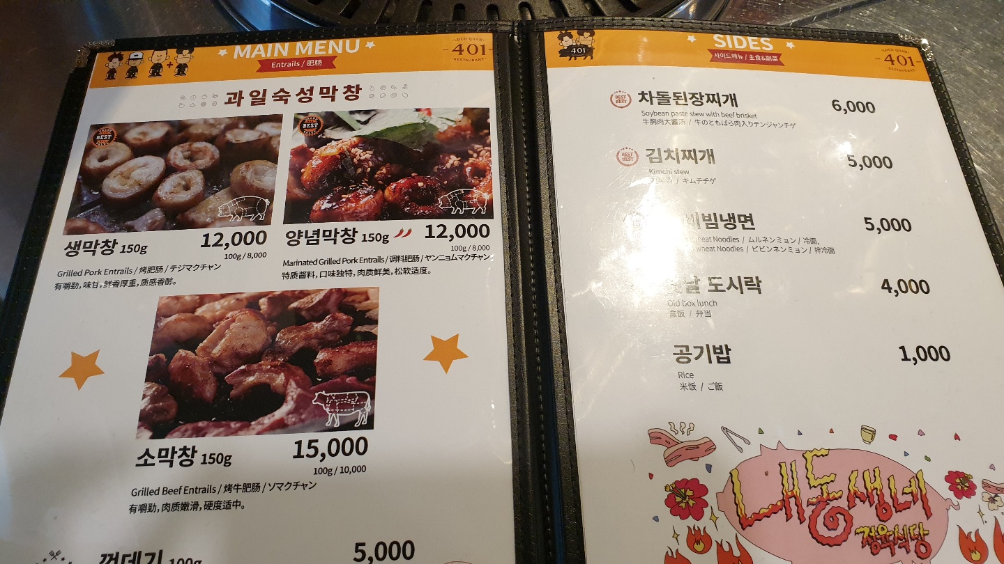 Haha & Kim Jong-guk’s 401 bbq restaurant is located in Hongdae. Since the restaurant is already famous as a great place to dine in Hongdae, the entrance is full of people waiting in line. Looking at the numerous photos of celebrities and the two owners is one of the joys of coming to the restaurant. Its signature dish is a set where all different cuts including ohgyupsal, moksal, and hangjeongsal are served, and the order can be placed by the number of people in a group. Juicy meat is very tasty when dipped in the fermented anchovy and home-made sauce provided upon ordering. Chadol soybean soup will also be the perfect addition for a soft texture and spicy finish.