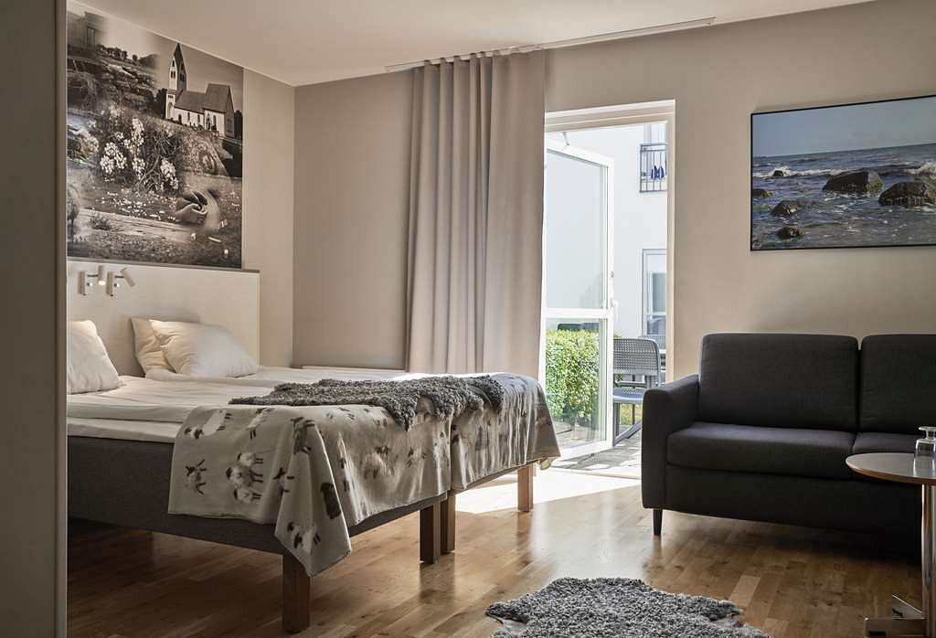 Stay at the best base from which to explore Visby, right opposite the ferry terminal and within walking distance of the medieval town centre. Before you go to bed after an adventure-filled day, you can relax in the whirlpool under the open sky and enjoy a tasty meal in the restaurant.