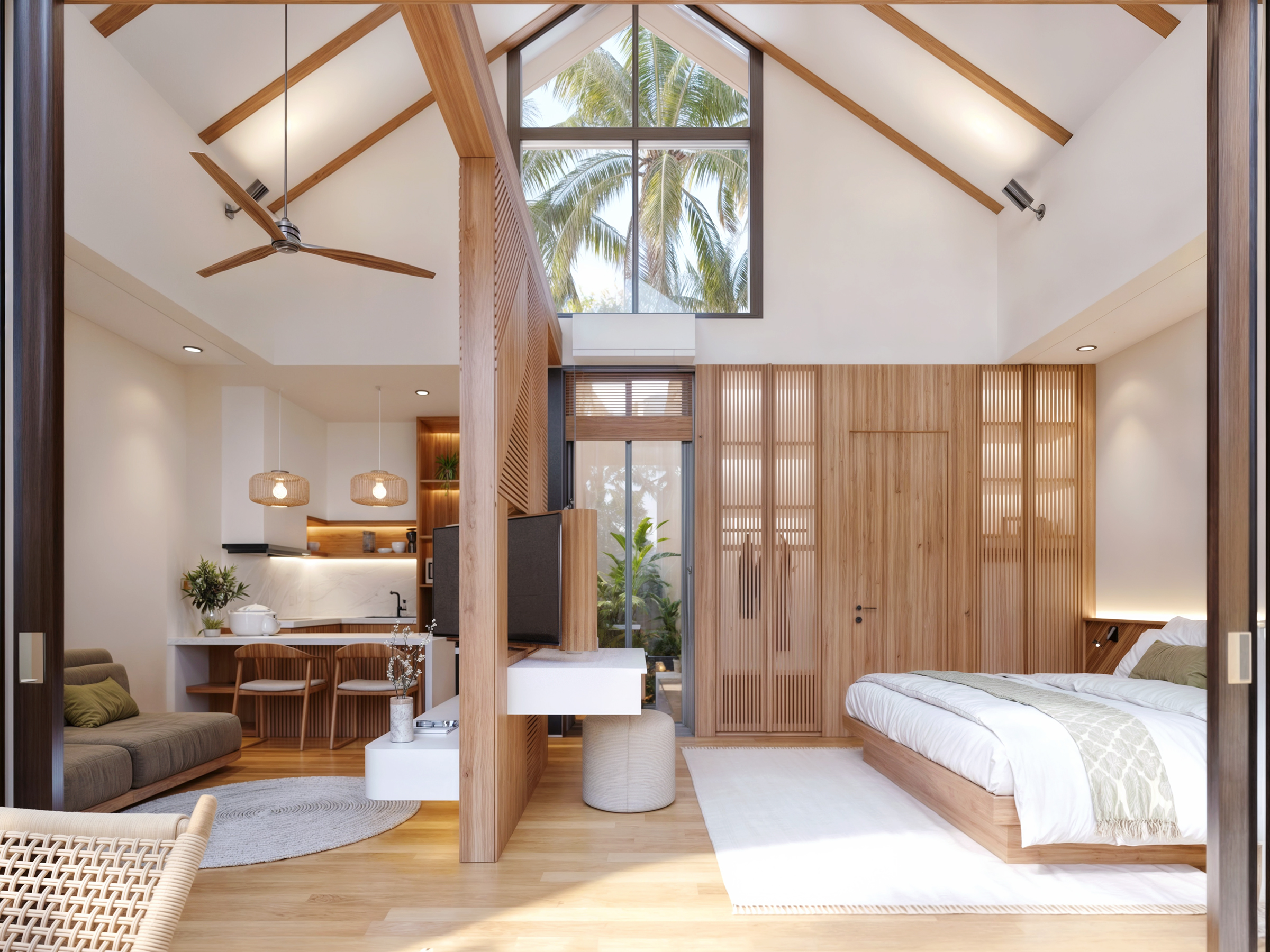Experience modern tropical living in the serene jungle surroundings of Sayan, Ubud, one of Bali’s most sought-after areas. These brand-new one-bedroom villas are perfect for those looking to enter the Ubud market with a profitable, low-maintenance investment. Combining privacy, elegance, and strong rental appeal, each villa is designed to attract both long-term tenants and daily rental guests seeking tranquility close to central Ubud.
