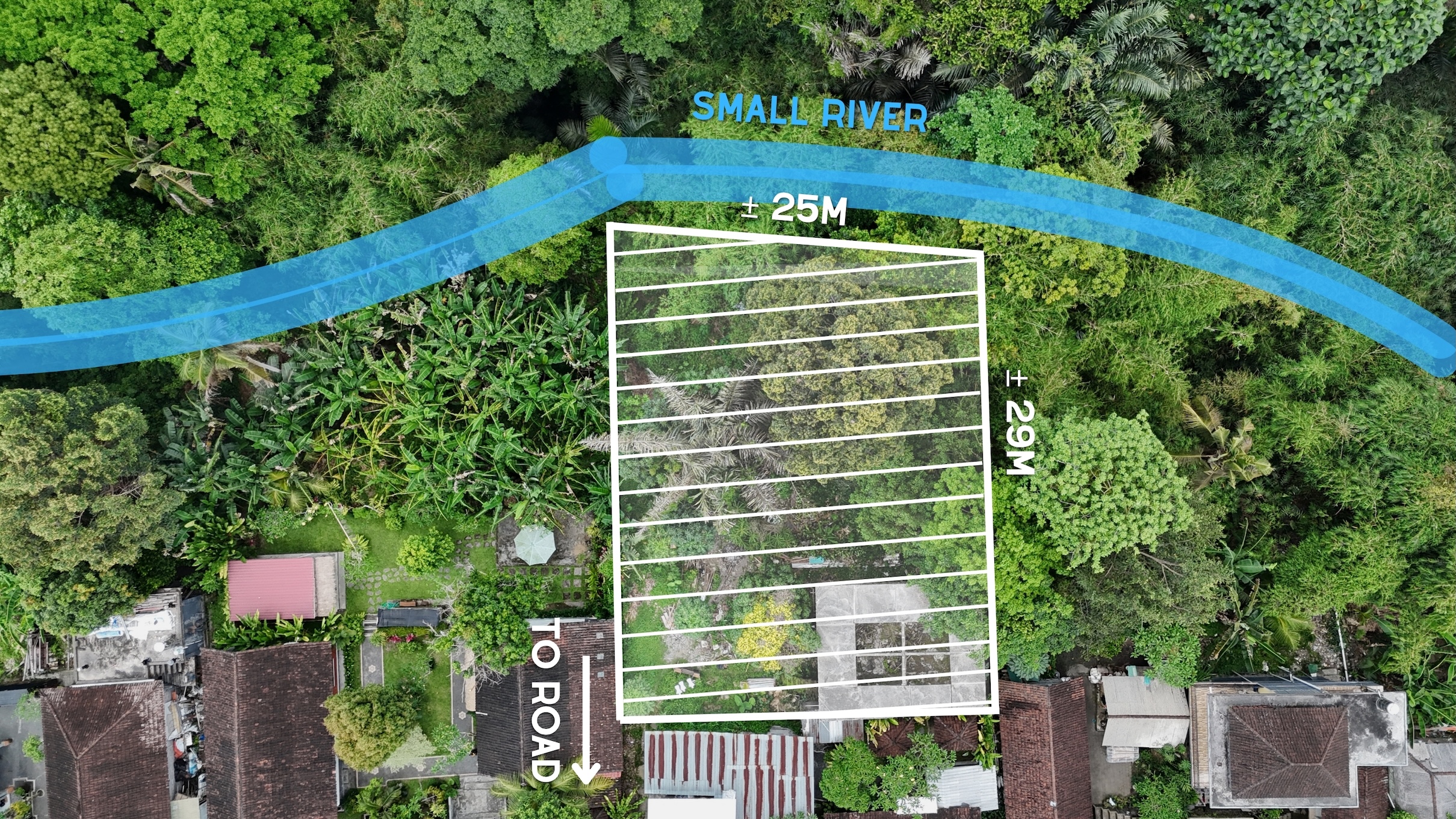 The land stretches approximately 25 meters along the river with a gentle slope that naturally frames the surrounding tropical landscape. Its rectangular shape and 3.5-meter car access ensure convenient design and development flexibility, while the pink tourism zone (ITR available) allows for a wide range of residential or hospitality uses. With demand for luxury villas in Ubud continuing to rise, this location offers an exceptional balance of privacy, accessibility, and investment potential.