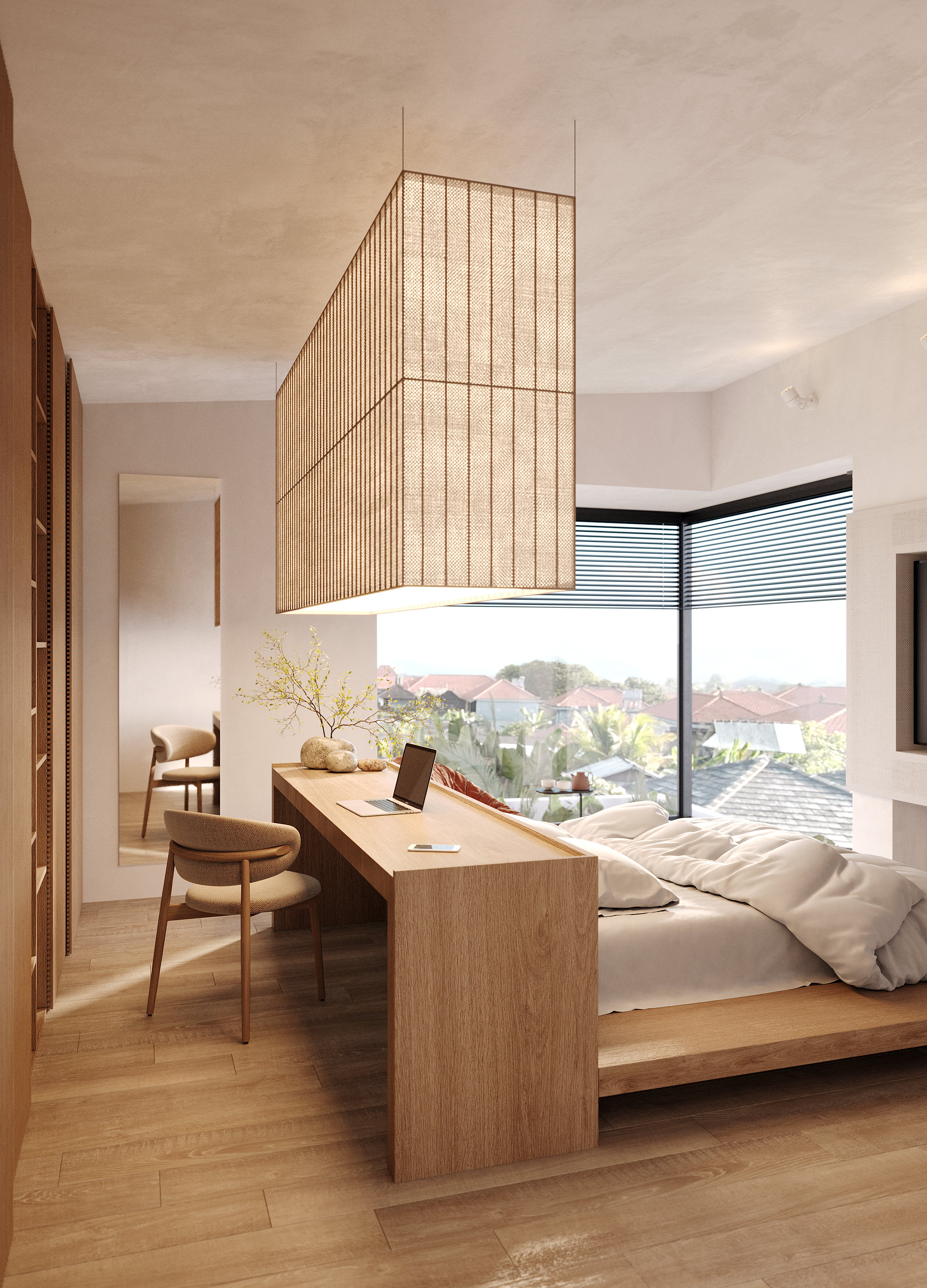 Tucked into one of Ubud’s most vibrant and tourist-friendly neighborhoods, this exclusive Japandi-style villa offers a unique blend of minimalism, warmth, and nature. Surrounded by other high-end villas and just 5 minutes from Ubud Center, the property is perfectly positioned for short-term rental success or peaceful personal use. The design highlights simplicity and functionality—perfectly suited for Bali’s tropical lifestyle, with natural textures, clean lines, and seamless indoor-outdoor flow.