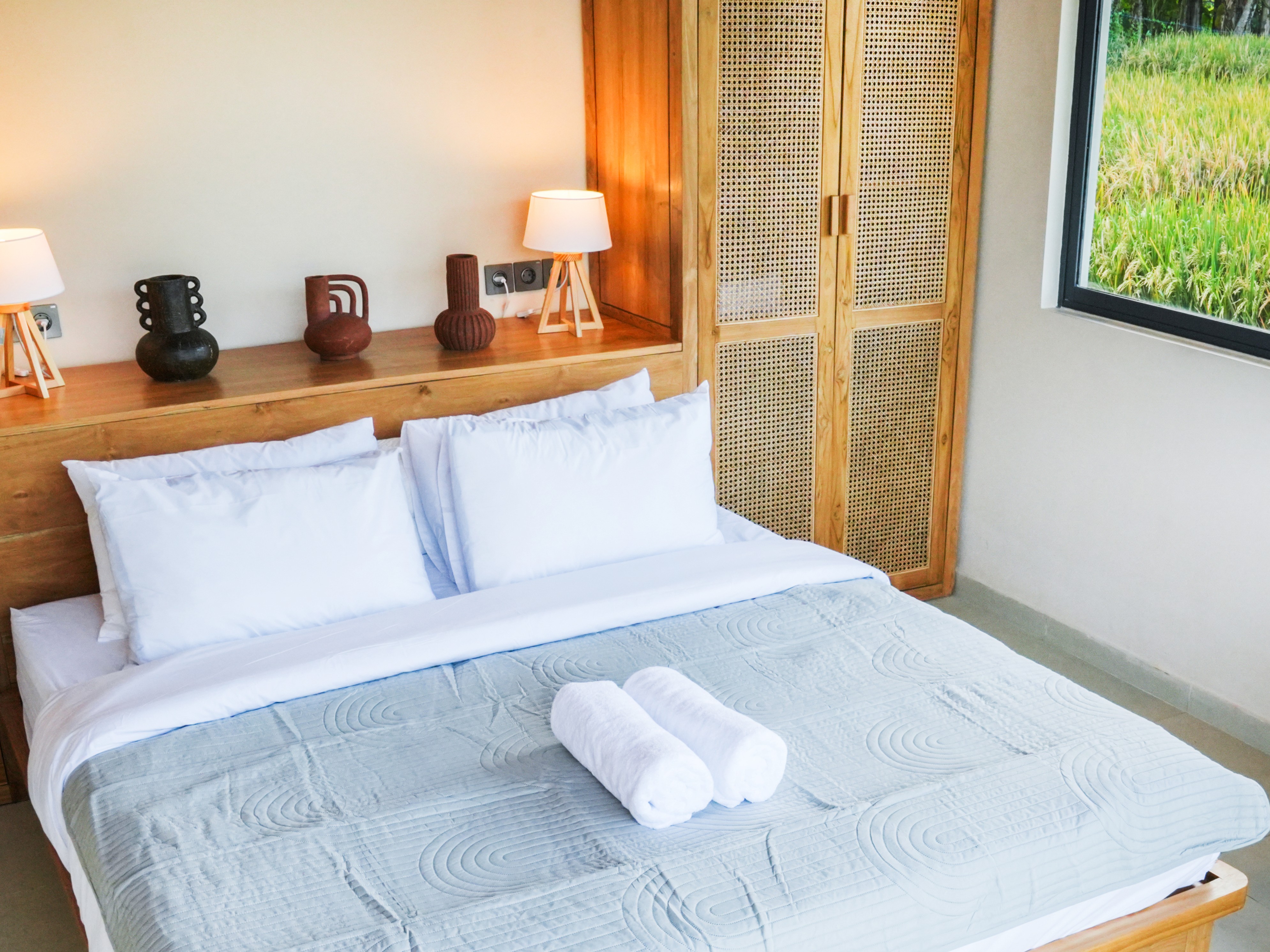 Open and uninterrupted views of rice fields and jungle.