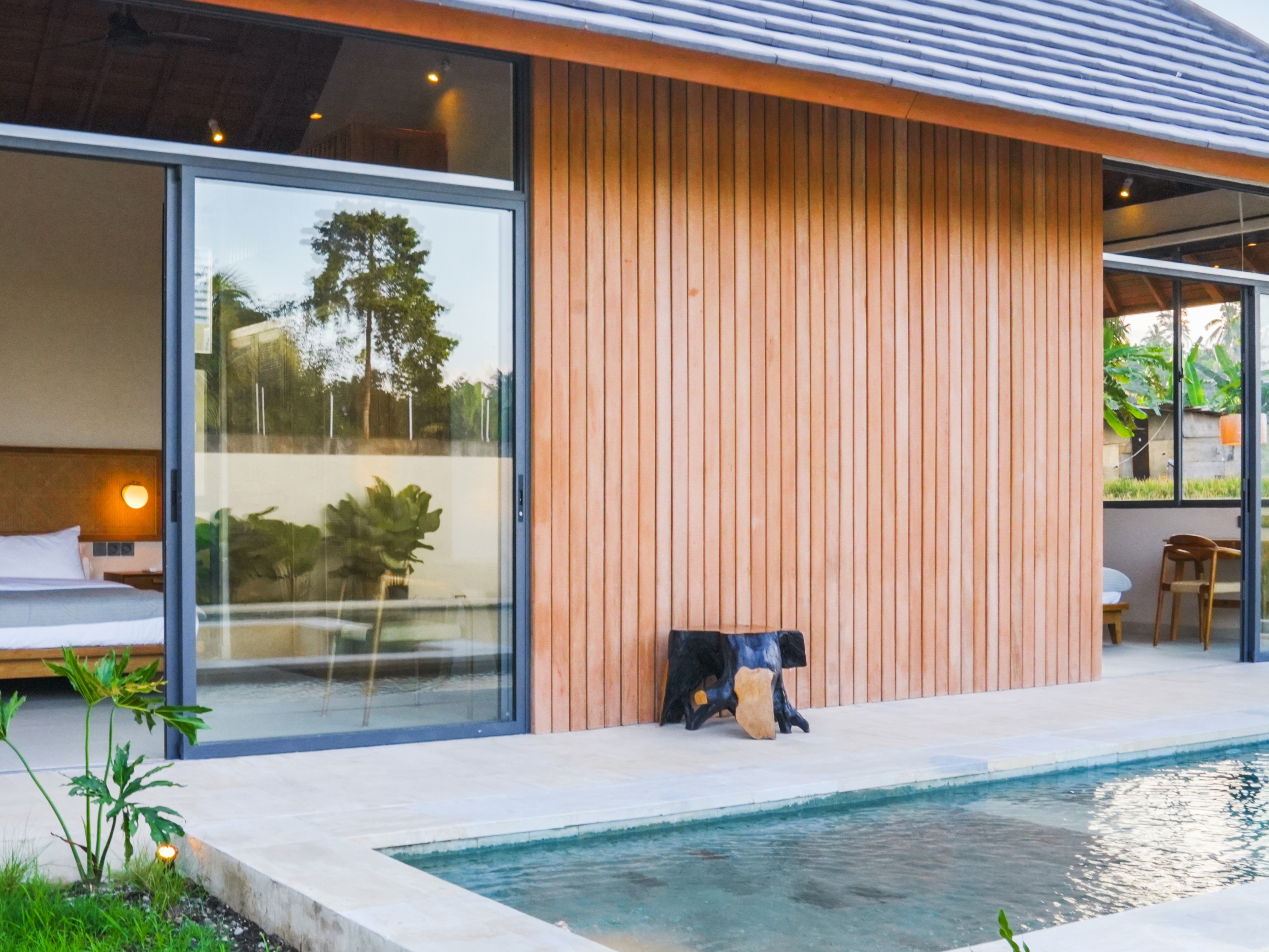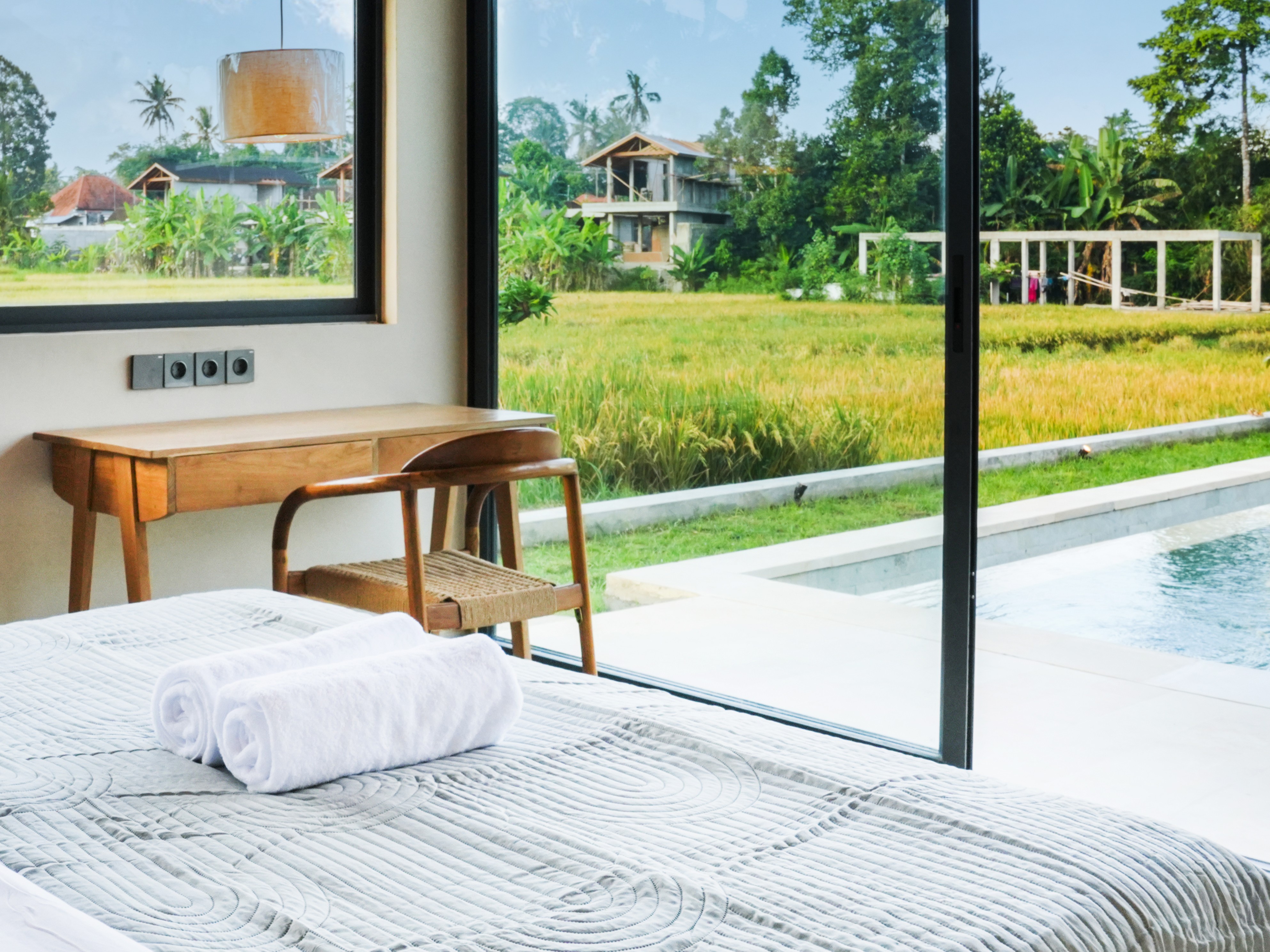 GREEN VIEW VILLAGE is a collection of spacious modern villas located in a peaceful green area of Ubud. The project is designed for comfortable living and stable investment returns. Each villa sits on a generous plot of land and features a large private swimming pool with open views of rice fields and jungle. To guarantee the breathtaking scenery, additional land in front of each villa is leased for the full leasehold period. This ensures that the rice field and jungle views remain unchanged for the entire duration of ownership.