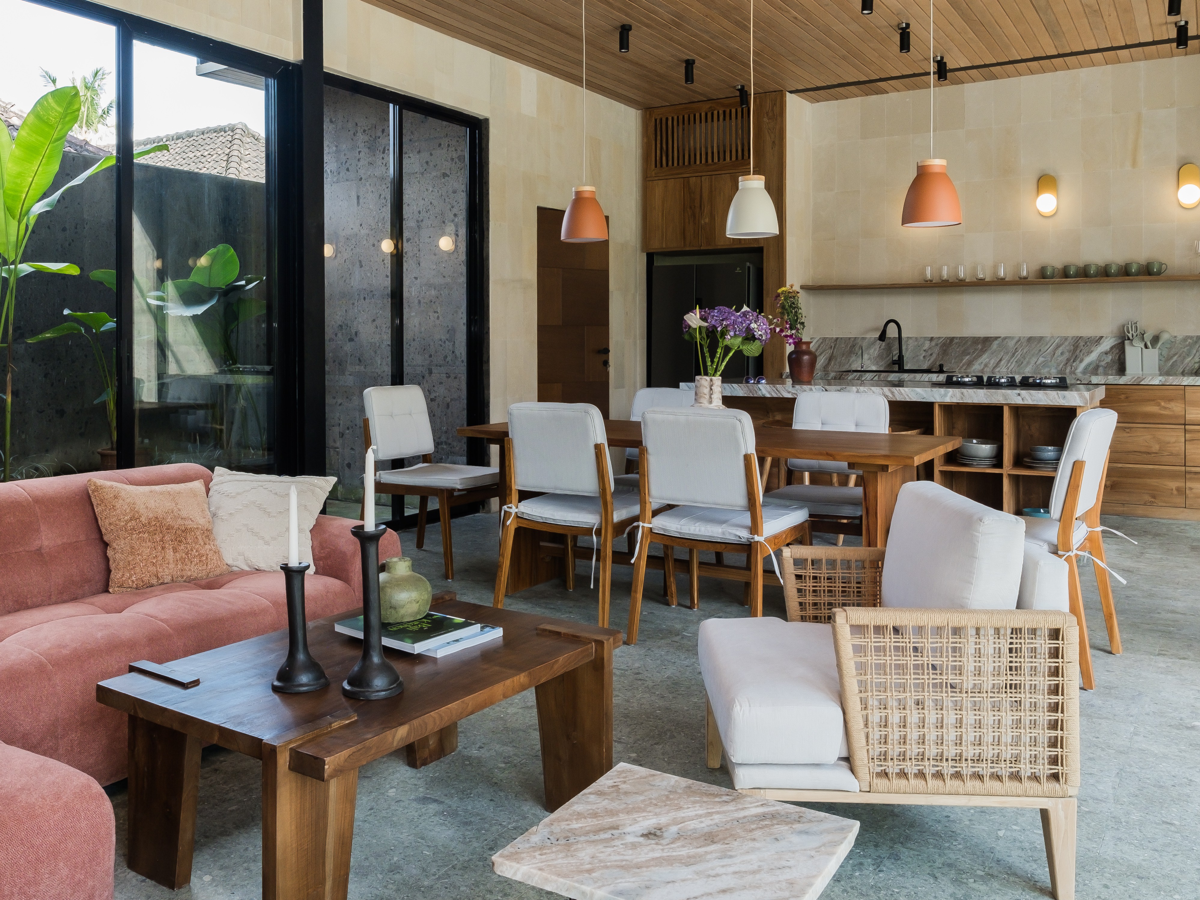 Premium finishes: natural stone, teak wood, marble