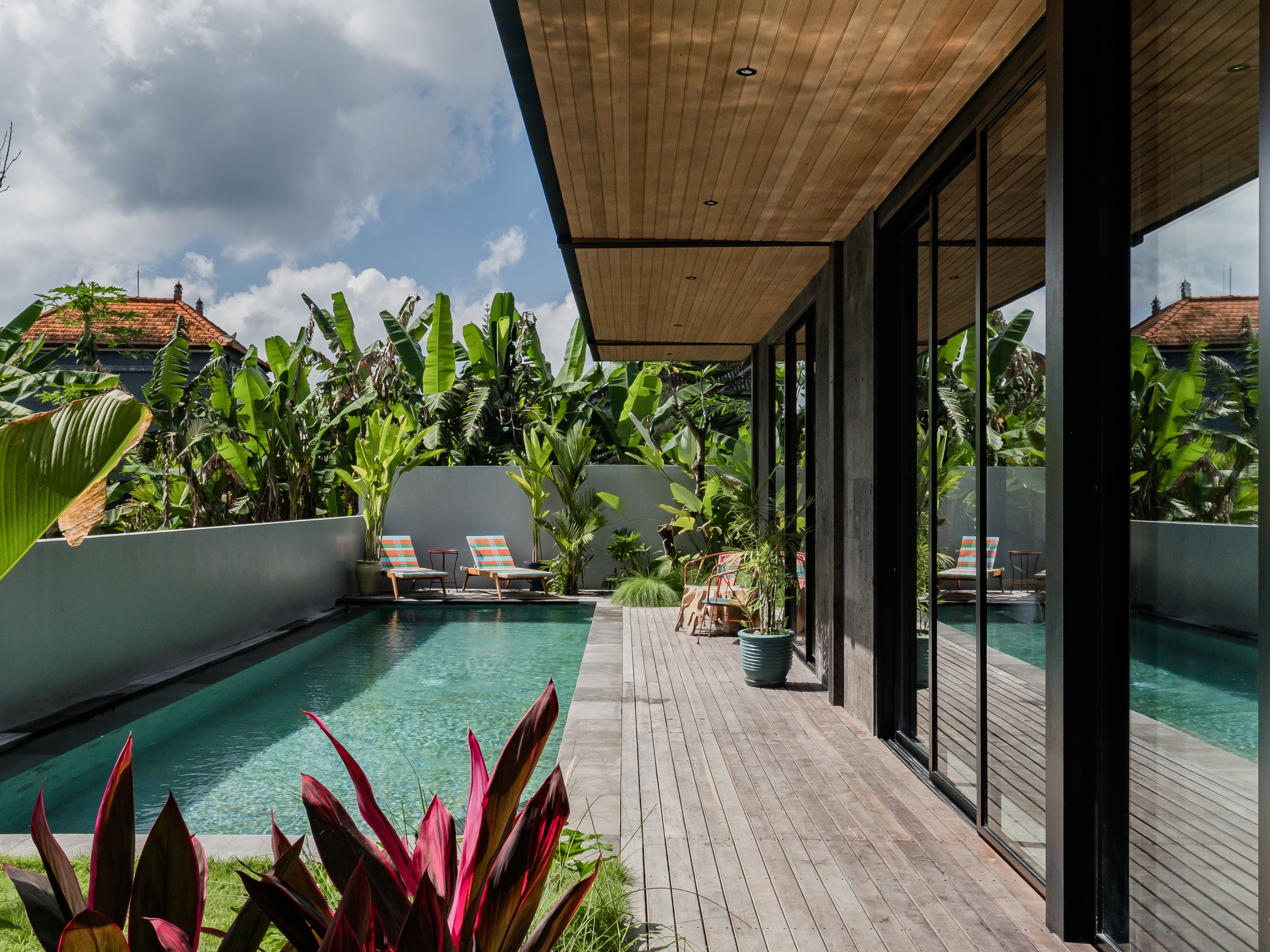 Large swimming pool and a green inner courtyard for relaxing